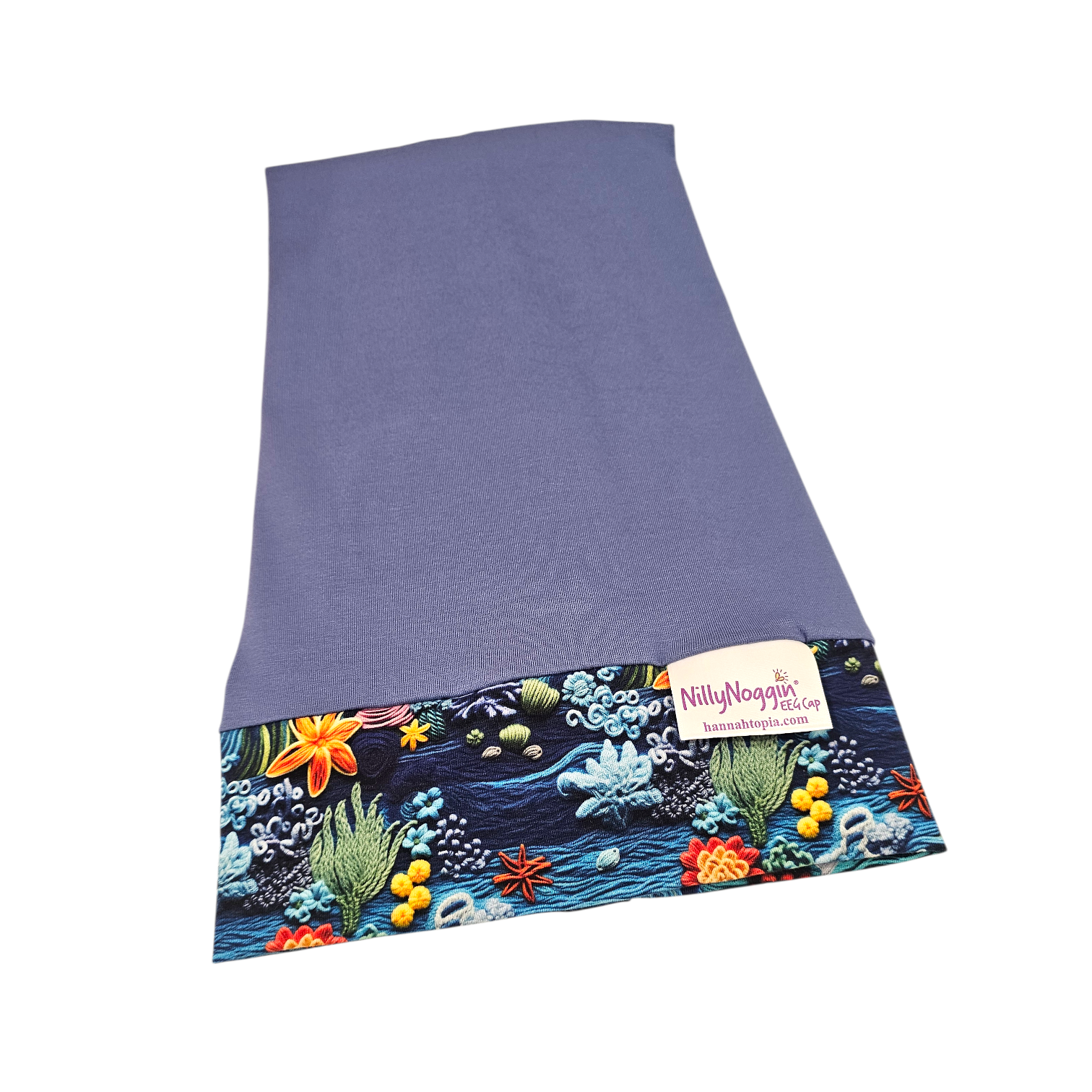 The Crystal Blue NillyNoggin EEG Cap is designed specifically for the EEG medical procedure. It assists in protecting the leads from wandering little hands as well as adds a fun, colorful cap to cover-up the ‘scary’ look of the leads. It is comfortable, breathable, cool and snug. Handmade in the USA of imported fabric of a cotton / spandex blend.
