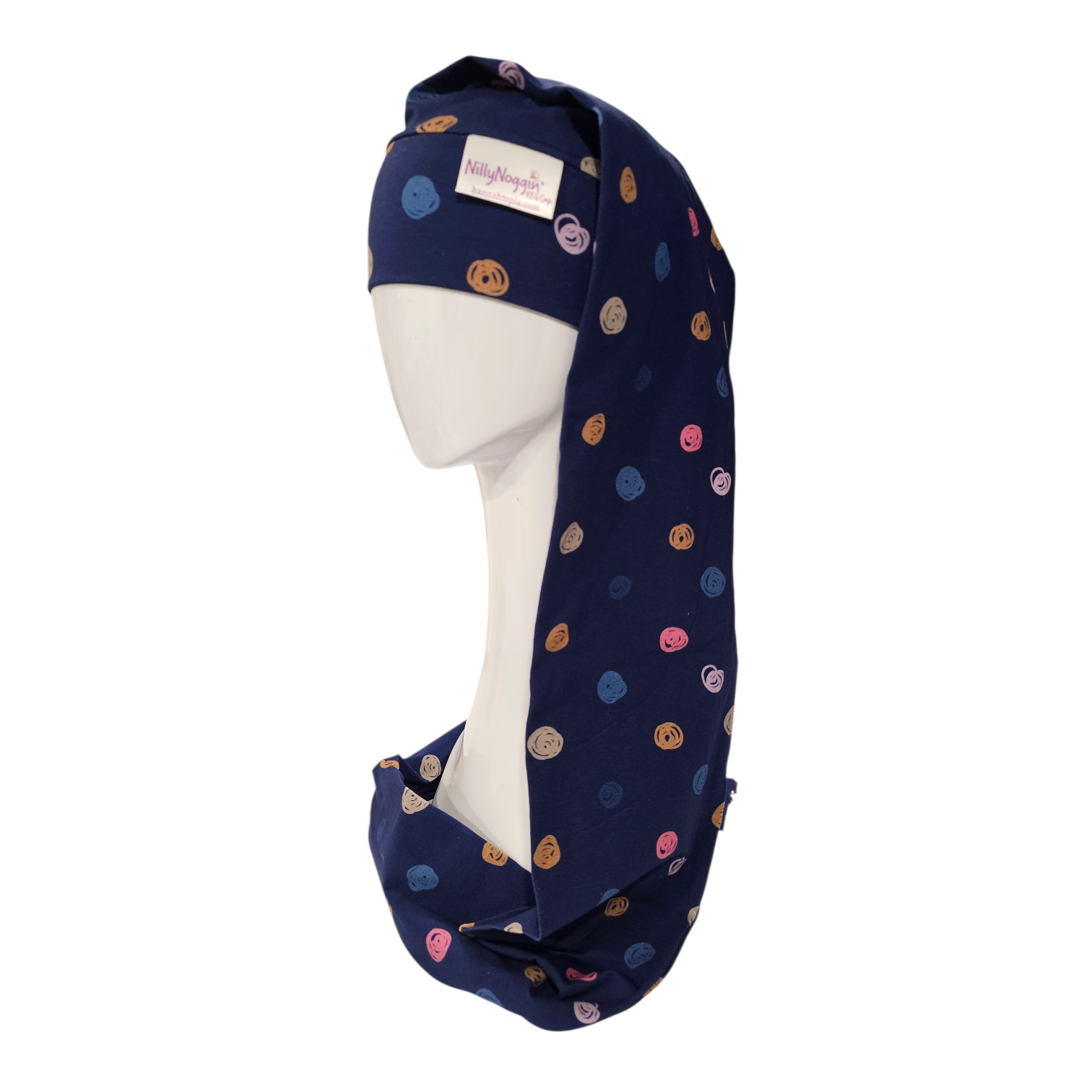 The Scribble Bibbly NillyNoggin EEG Cap is designed specifically for the EEG medical procedure. It assists in protecting the leads from wandering little hands as well as adds a fun, colorful cap to cover-up the ‘scary’ look of the leads. It is comfortable, breathable, cool and snug. Handmade in the USA of imported fabric – 95% cotton, 5% spandex. This Scribble Bibbly NillyNoggin EEG cap is so comfy! The caps are one size fits most from child to adult. Care Instructions: machine wash warm, line dry. May iron if needed. Some shrinkage may occur. We recommend you wash the Nilly Noggin prior to use.