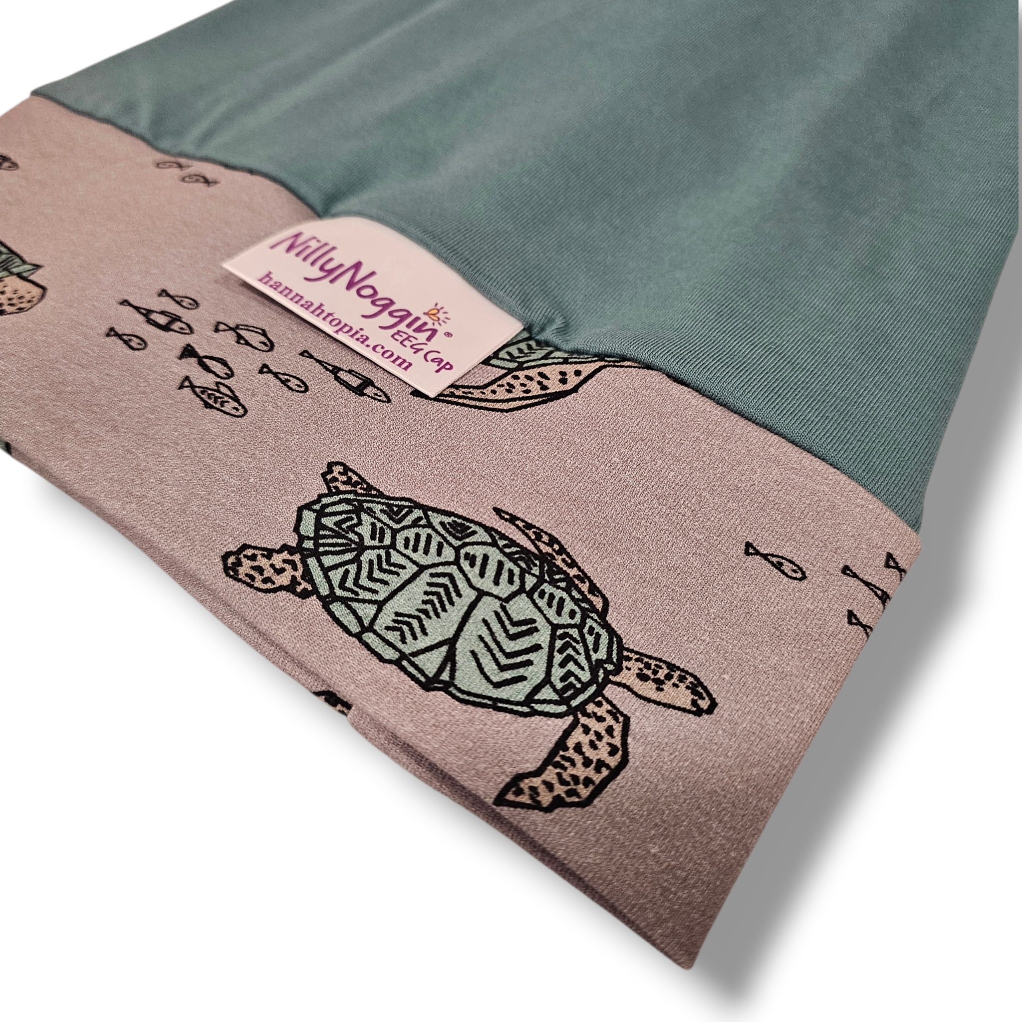 The Tilly Turtle NillyNoggin EEG Cap is designed specifically for the EEG medical procedure. It assists in protecting the leads from wandering little hands as well as adds a fun, colorful cap to cover-up the ‘scary’ look of the leads. It is comfortable, breathable, cool and snug. Handmade in the USA of imported fabric of a cotton / spandex blend.