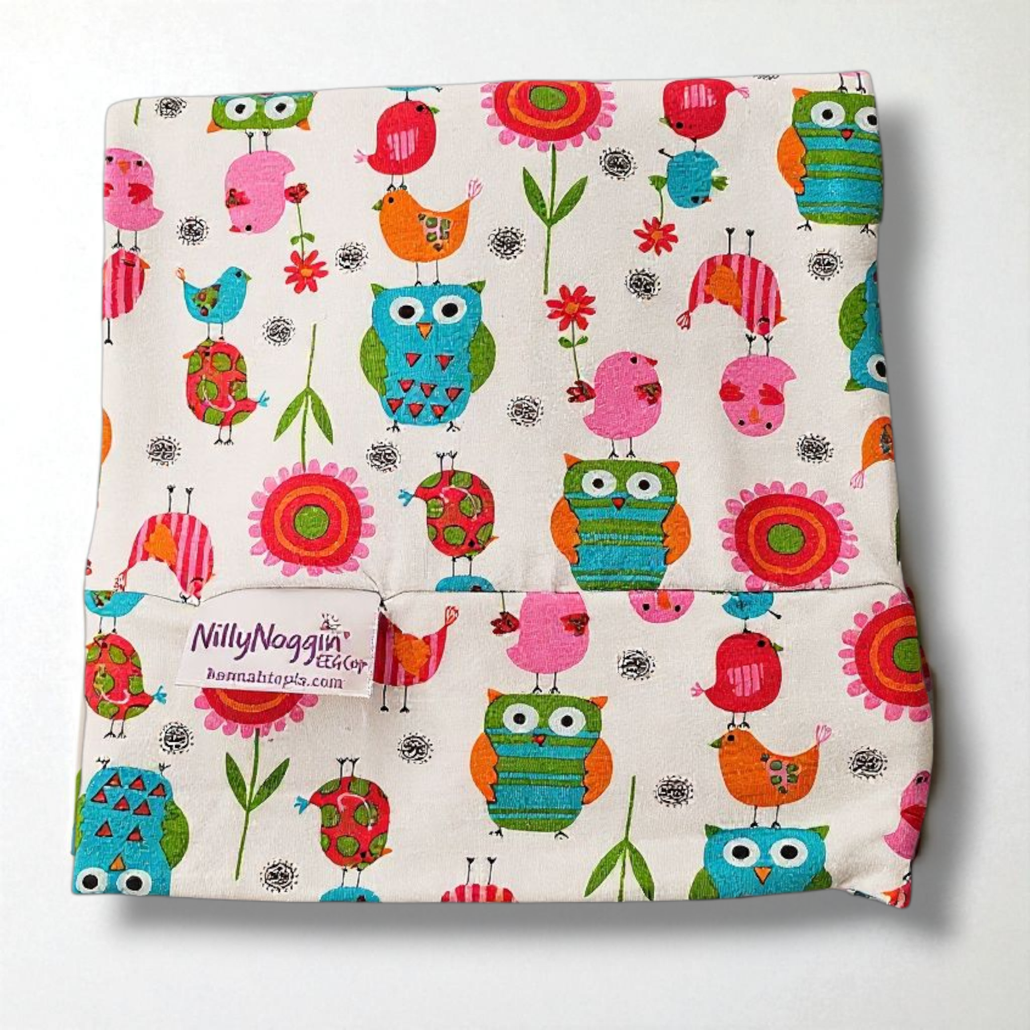 The You’re a Whoot NillyNoggin EEG Cap is designed specifically for the EEG medical procedure. It assists in protecting the leads from wandering little hands as well as adds a fun, colorful cap to cover-up the ‘scary’ look of the leads. It is comfortable, breathable, cool and snug. Handmade in the USA of imported fabric – 95% cotton, 5% spandex. This You’re a Whoot NillyNoggin EEG cap is so comfy! The caps are one size fits most from child to adult. Care Instructions: machine wash warm, line dry. May iron if needed. Some shrinkage may occur. We recommend you wash the Nilly Noggin prior to use.